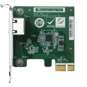 The QNAP QXG-2G1T-I225 1-Port PCIe Network Interface Card adds a 2500Mbps gigabit Ethernet port to existing products. The QXG-2G1T-I225 helps improve overall NAS performance while providing an affordable upgrade path for reaching 2500Mbps speeds.