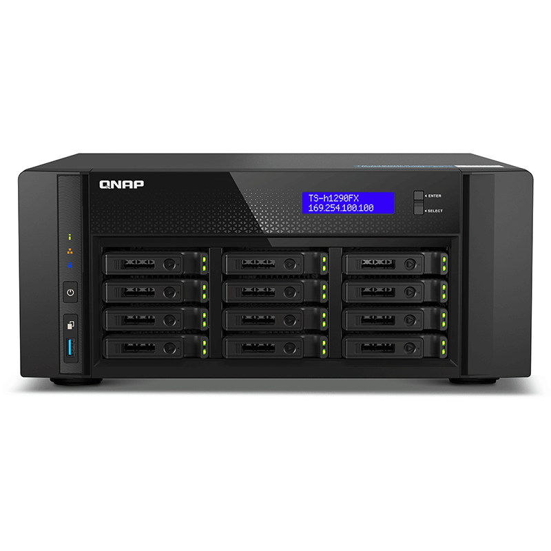 The 12-bay TS-h1290FX is a tower model with server-grade hardware and expandable architecture, enabling optimal performance and flexibility.