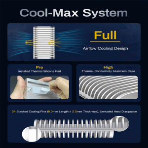 Cooling: Fanless, all-aluminum enclosure (no noise)