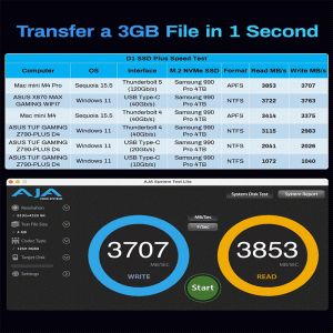 It can serve as a bootable macOS drive or an external storage expander — especially useful for systems with limited built-in storage like MacBook Air or Mac mini. You can install macOS on the SSD inside the D1 enclosure and boot right from it.