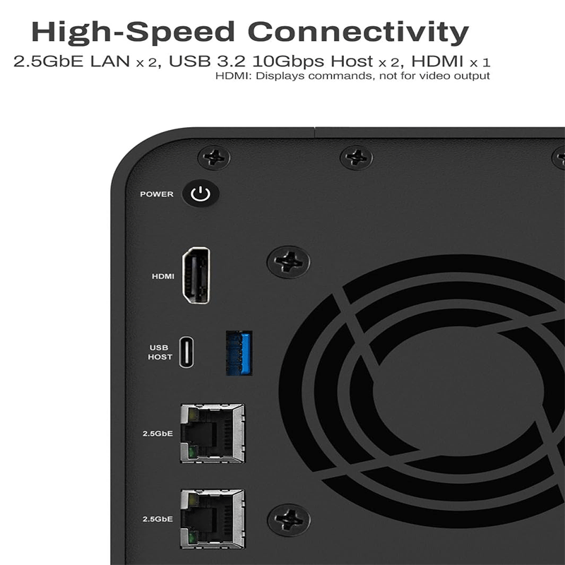 Dual 2.5 GbE ports allow ~283 MB/s transfer rates in optimal setups and link aggregation up to ~5 Gb/s.