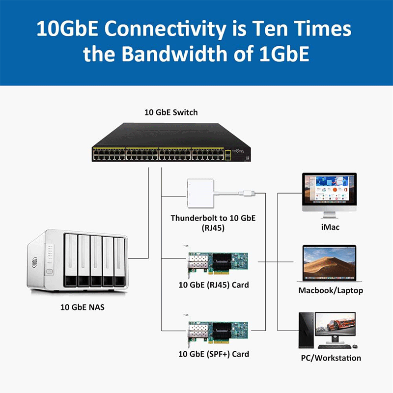 Performance may vary: Real‑world 10 GbE throughput depends on clients, cables, and disk performance.