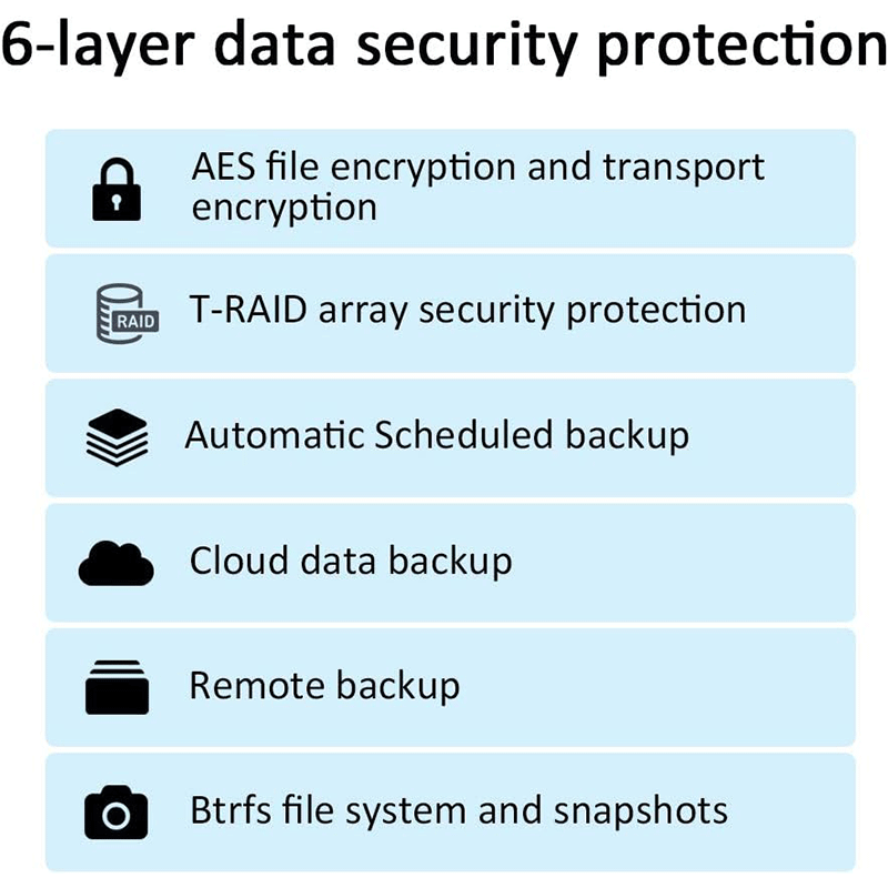 TOS (TerraMaster Operating System): Web‑based NAS OS with apps for backup, sync, multimedia, and more.