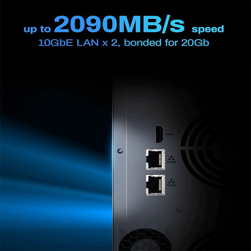 10GbE Ports: 2 × RJ‑45 10GbE (can combine for ~20 Gbps)